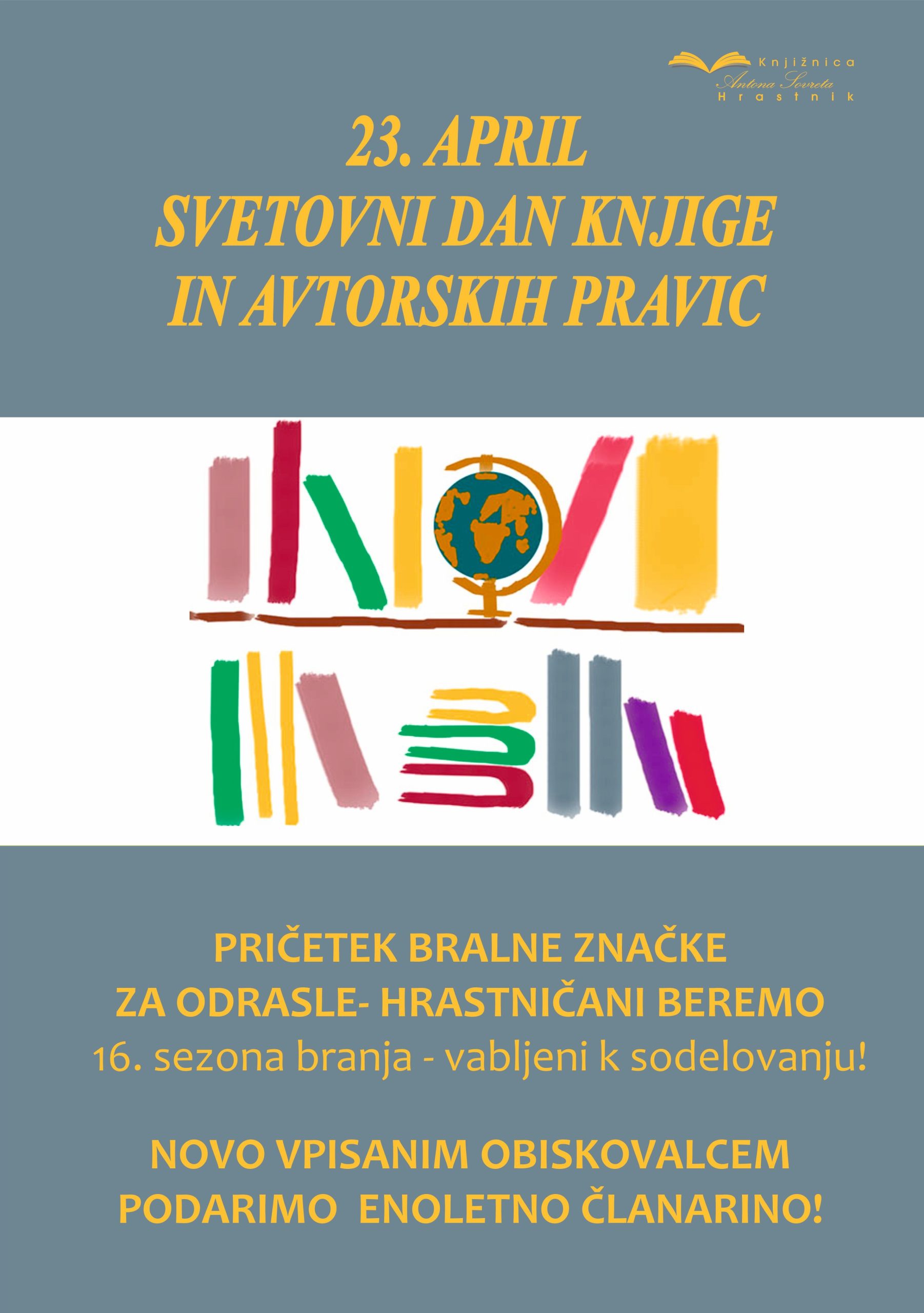 23. april obeležujemo kot Svetovni dan knjige in avtorskih pravic, [...]